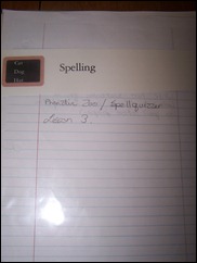 Our school is now ready to go by Sunday evening without me worrying over it. I have an assignment log ready for them in a page protector, that they mark off on the page protector, when I grade the assignment, I pull it out and mark their grade in the appropriate box. When the week is over, the grade/assignment record goes in the portfolio.